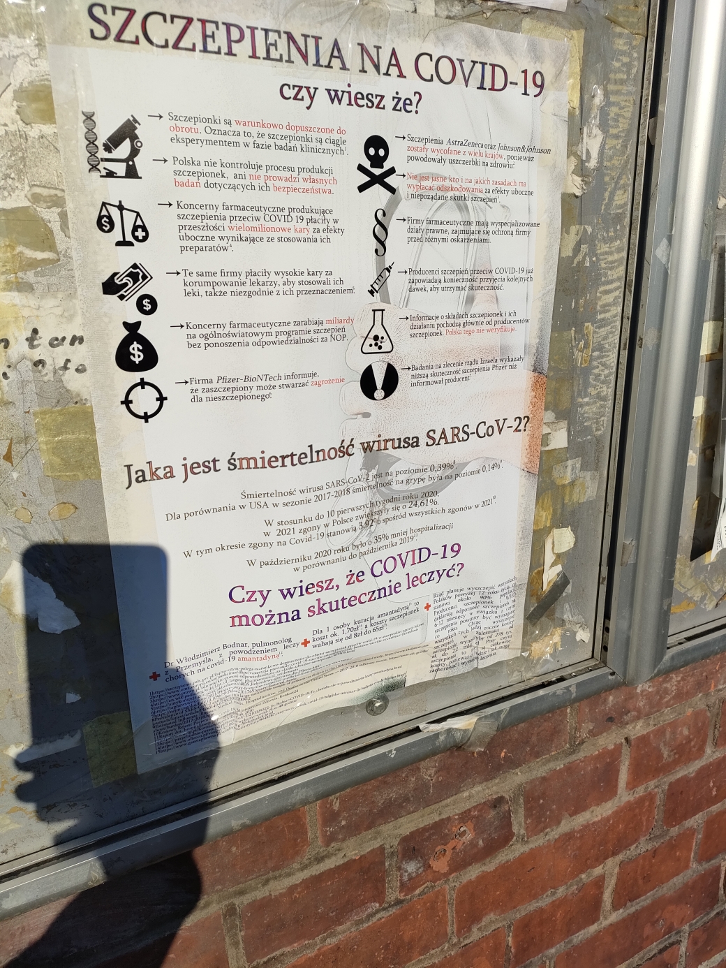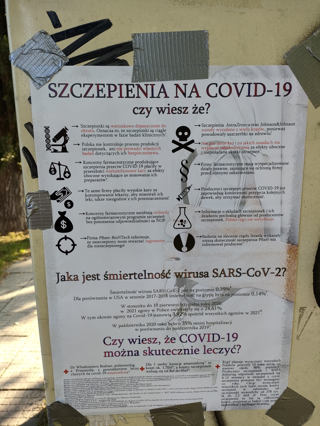 Dzięki Waszemu wsparciu mogliśmy rozpocząć akcję ulotkowo-plakatową, przedstawiającą fakty na temat tzw. szczepień przeciw COVID-19 oraz informującą o nielegalnych praktykach takich firm, jak Pfizer. Dzięki uzbieranym z Waszych darowizn środkom, możemy każdego dnia docierać do mieszkańców Wrocławia i nie tylko. Udało się nam rozdać niemal 2500 ulotek i rozwiesić 100 plakatów!