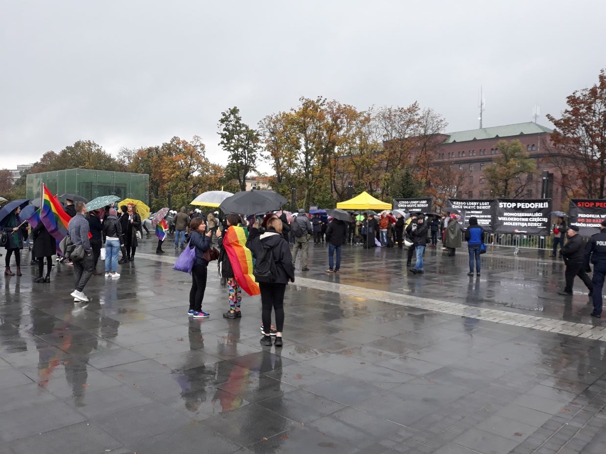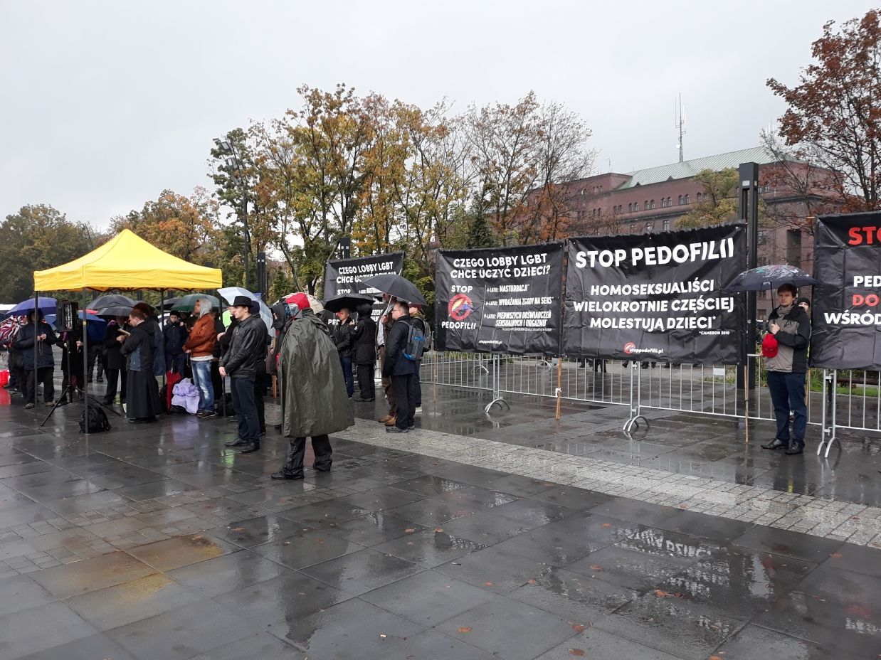 Wzięliśmy także udział w ofensywie modlitewnej. Stanęliśmy naprzeciwko formującego się tzw. „marszu równości”, gdzie razem z księdzem odmawialiśmy Różaniec Święty, mając nadzieję, iż Pan Bóg powstrzyma tę diabelską zawieruchę. Urząd miasta Wrocław puszczał bardzo głośno muzykę, jakby chciano zagłuszyć naszą modlitwę. Miałem dziwne uczucie obecności czegoś złego, gdy fale uczestników marszu zbierały się pod flagami LGBT.